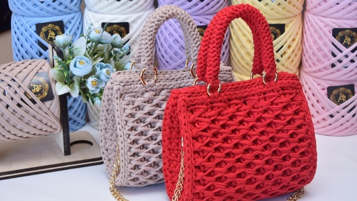 Мастер класс Вязаная сумка с узором соты из трикотажной пряжи
