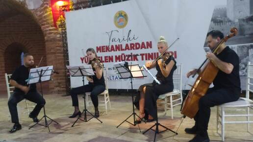 Танго под живые звуки скрипок и виолончели в средневековой Красной башне в турецкой Аланье - концерт, 25.08.2024