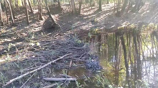 Бобровая плотина на лесной речке