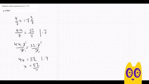 Найдите корень уравнения 4/7 x = 7*7/3