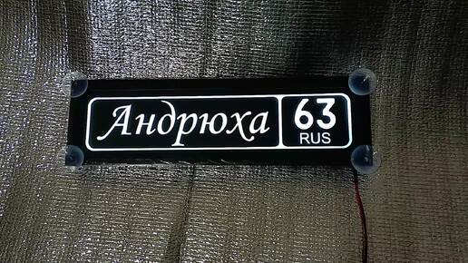 Светящаяся табличка с именем Андрюха 63 rus регион в качестве подарка от девушки