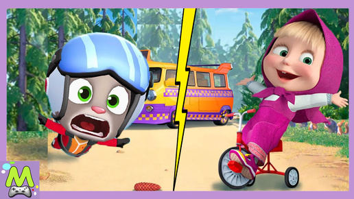 Маша и Медведь против Говорящего Тома.Гонки на Велосипедах и Самолетах.Кто Быстрее.Мультик Игра