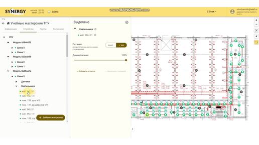 SYNERGY Выбор светильника из списка или на интерактивном плане