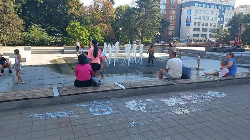 Дети в фонтане возле Донской библиотеки в Ростове на Дону