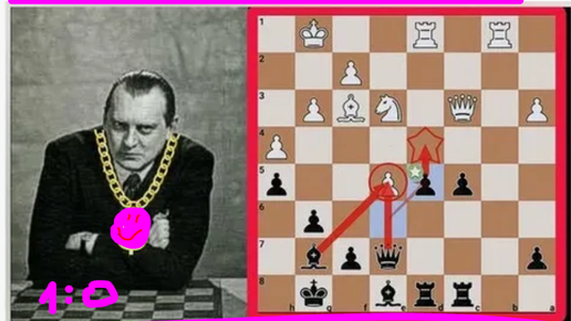 ЧМ Александр Алехин покорил белого короля Лайоша Стейнера, играя черными шахматную "испанскую" партию на Фолкстоунской олимпиаде 1933 года