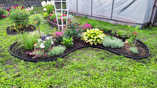 Установка бордюрной ленты на клумбе.Обрезка малины. Уютная дача.