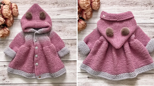 Детский кардиган/пальто спицами. Часть-1. Размер 12-18 мес.