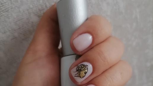 Обычный лак. Маникюр в молочном цвете с дизайном.