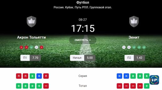 27 августа 2024. Акрон Тольятти - Зенит прогноз на матч Россия. Кубок