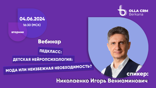 Педкласс. Николаенко Игорь Вениаминович. Детская нейропсихология. Мода или неизбежная необходимость?