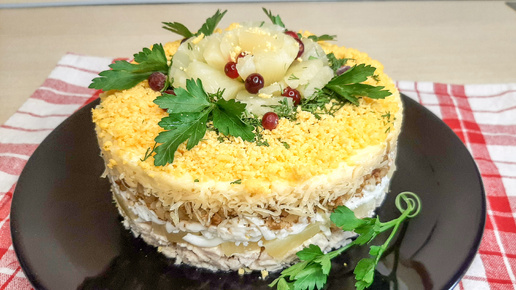 Салат 💯"Дамский каприз" с курицей и ананасами на НОВЫЙ ГОД 2024. Вкусный Салат на праздничный стол!
