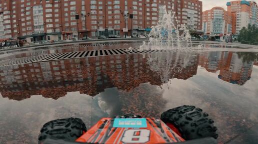 Гонки с Лёвой на машинке с гоупро по фонтану #Короткихснимает