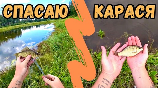 СПАСЕНИЕ КАРАСЯ ИЗ ЛУЖИ🐟🐟🐟