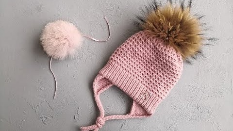 ДЕТСКАЯ ШАПКА СПИЦАМИ С ПОДКЛАДОМ, УШКАМИ И ЗАВЯЗКАМИ.