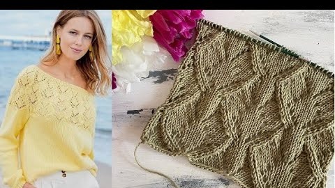 Красивый ажурный узор для вязания джемперов, топов, маечек и кардиганов. Схема узора.