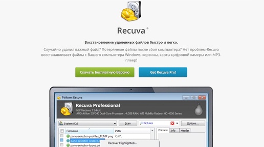 Как восстановить удалённые фотографии, картинки, файлы с помощью программы Recuva ?
