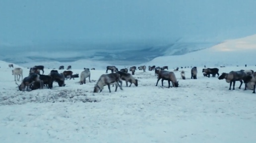 Северные олени пасутся в -35 в горах Полярного Урала близ Лабытнанги.