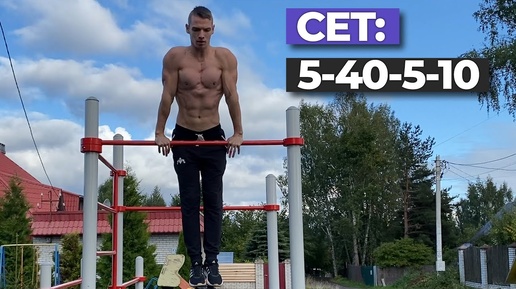 Сет: выходы силой - отжимания от перекладины - подтягивания