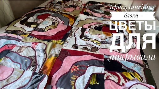 Огромные лоскутные блоки-цветы для покрывала: ткани, крой, резка, сшивание, раскладка. Пэчворк.