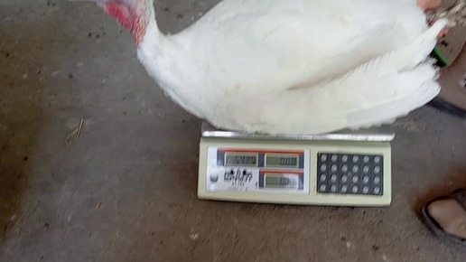 Взвешивание индюшки породы БШГ в возрасте четырёх месяцев.