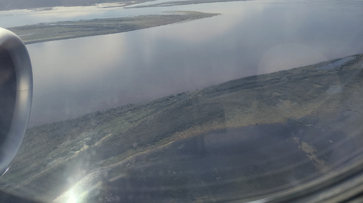Новый Уренгой - Салехард:45 минут на Сухом суперджете авиакомпании "Ямал".На борту и покормят, и развлекут.Из иллюминатора потрясающие виды