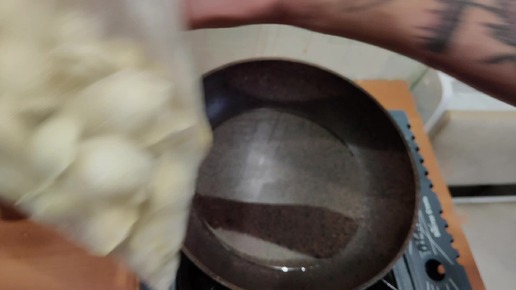 пельмешки на сковороде ( да да если добавить сметану и сыр будет ещё вкуснее но что было то и приготовили)