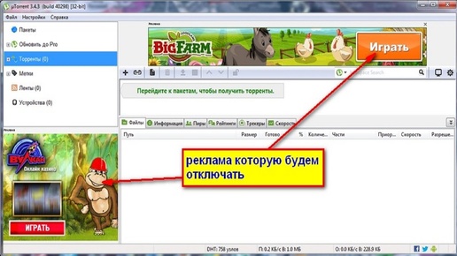 Как отключить рекламу в программе mTorrent