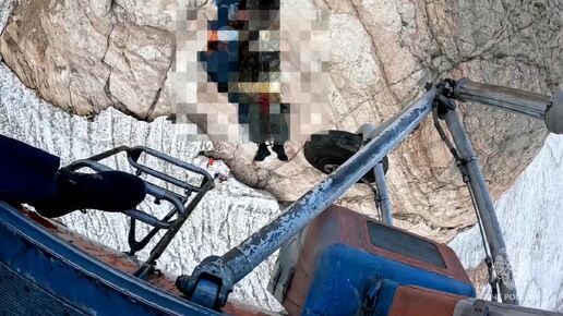 Эвакуация на вертолёте упавшего в расщелину ледника горы Фишт туриста