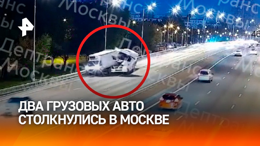 Жесткое столкновение двух грузовых авто в Москве