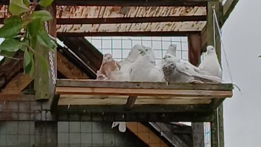Голуби купаются под дождём.