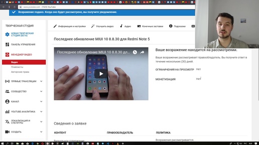 Как подать возражение на авторское право на ваш ролик в Youtube