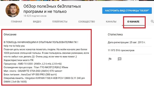 Как редактировать описание канала youtube