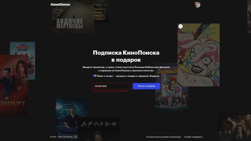 Промокод SIDIMDOMA на Кинопоиске бесплатный период просмотра фильмов и сериалов в хорошем качестве.