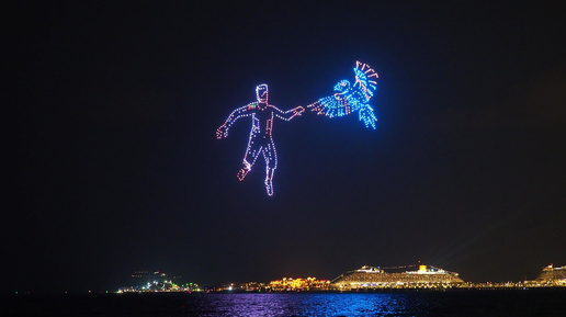 Фрагменты шоу дронов у пляжа JBR, Дубай