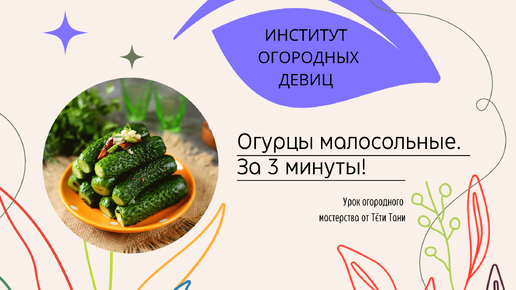Огурцы МАЛОСОЛЬНЫЕ за 3 минуты без посуды!