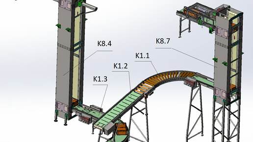 Далее: Транспортирование пустых ящиков после мойки с этажа на этаж с вертикальным конвейером