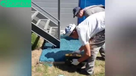 Укладка резинового покрытия под лестницей