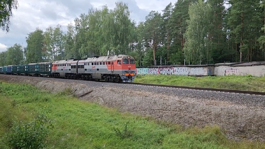 ЧМЭ3-2811 с вагонами лабораториями и 2ТЭ116УД-041 с грузовым.