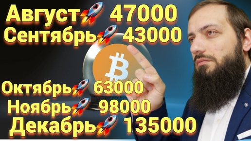 БИТКОИН до 2021 год : август🚀 47 тыс., Сент🚀 43 тыс.,Октябрь🚀 63тыс ,Ноябрь🚀 98 тыс., Дек🚀 135 тыс.
