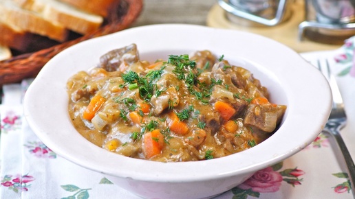 🍲 Детский гуляш из говядины - рецепт мягкого мяса с ароматной подливой, как в детском саду!