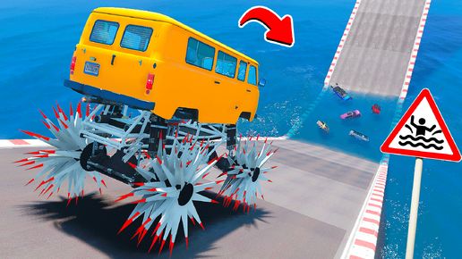 СМОЖЕТ ЛИ ГИГАНТСКАЯ БУХАНКА НА КОЛЮЧКАХ ПРОЕХАТЬ БОЛЬШУЮ ЛУЖУ В ГТА 5 МОДЫ - ЭКСПЕРИМЕНТЫ В GTA 5 MODS