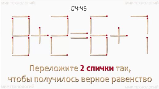 Задача 208. Переложите 2 спички так, чтобы получилось верное равенство (8+2=6+7)