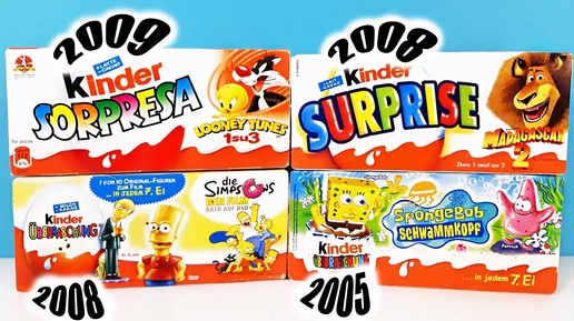 СТАРЫЕ Киндер Сюрпризы СИМПСОНЫ,Мадагаскар,ГУБКА БОБ,Looney Tunes,SpongeBob Kinder Surprise unboxing