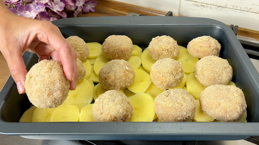 Потрясающий рецепт куриных фрикаделек в духовке с картошкой и грибами!