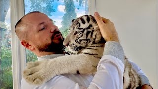 Тигры, это вам не кошки, доктор Василий воюет с белыми тигрятами пытаясь дать им лекарство)