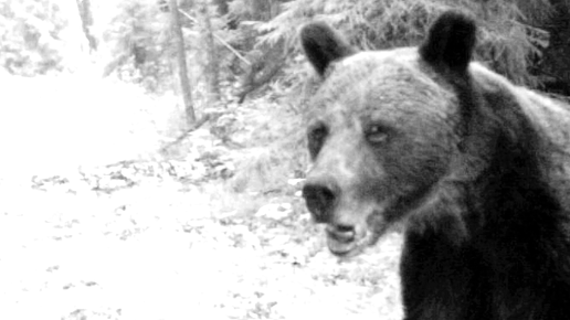 Медведица напала на фотоловушку!