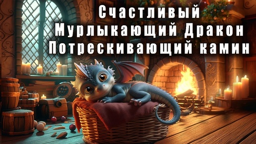 Расслабьтесь с мурлыкающим дракончиком. Расслабляющие звуки фэнтези. Потрескивающий камин