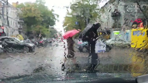 Белый шум. Дождь из окна автомобиля.