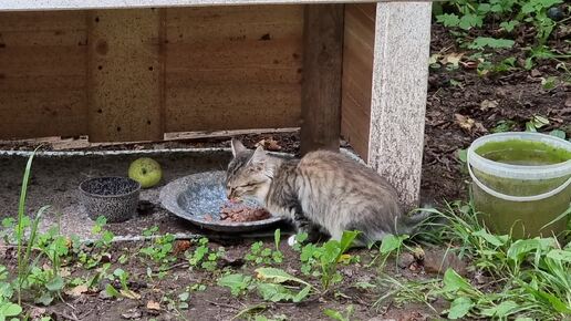 Муркина кошечка вкусно кушает. У кисы отменный аппетит.