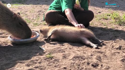 Детеныш капибар из Ленинградского зоопарка обожает, когда ему чешут пузико
